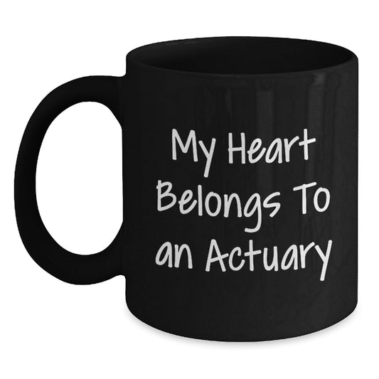 Funny Actuary Gifts, My Heart Belongs To An Actuary, Black Coffee Mug, Birthday Unique Gifts from Friends to Actuary