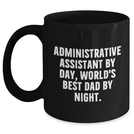 Administrative Assistant Gifts from Friends, Unique Black Coffee Mugs for Graduation, 'Administrative Assistant By Day, World's Best Dad By Night.' Funny Quote