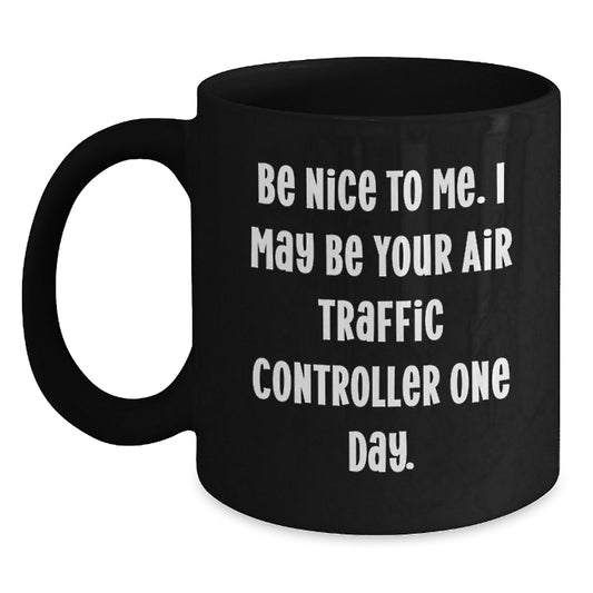 Funny Air Traffic Controller Gifts, Be Nice To Me. I May Be Your Air Traffic Controller One Day. Black Coffee Mug for Graduation, Gifts from Friends, Gifts for Air Traffic Controller