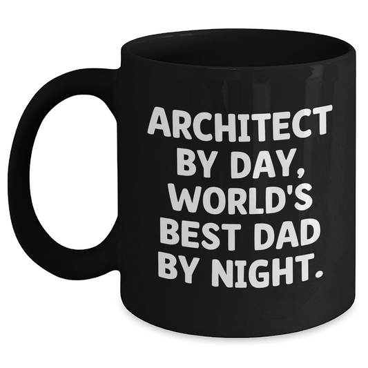 Architect By Day, World's Best Dad By Night. Funny Black Coffee Mug Gifts for Architect, Graduation Unique Gifts from Dad to Men