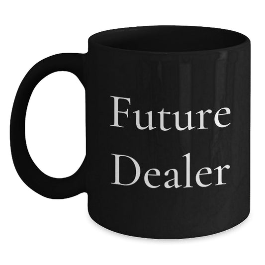Funny Future Dealer Gifts from Friends for Men and Women Black Coffee Mug, Graduation Unique Gifts