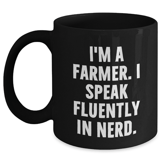 Funny Farmer Gifts, 'I'm A Farmer. I Speak Fluently In genius.' Black Coffee Mug for Graduation, Gifts from Men to Farmer