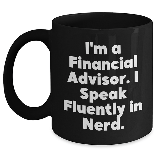 Funny Gifts from Friends to Financial Advisors, Black Coffee Mug for Graduation, 'I'm A Financial Advisor. I Speak Fluently In genius.'