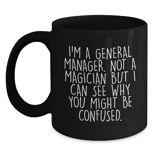 Funny General Manager Gifts from Friends to General Manager - Black Coffee Mug for Graduation, 'I'm A General Manager. Not A Magician...'
