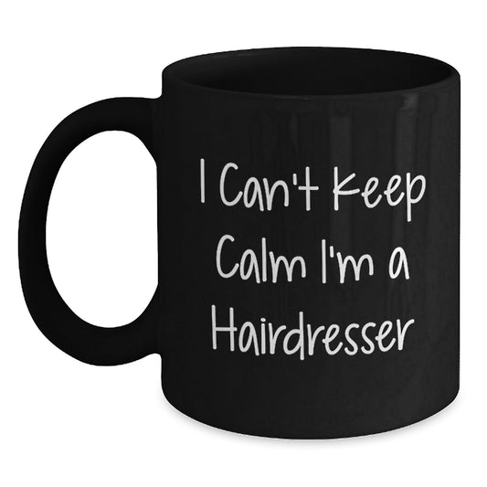 Funny Hairdresser Gifts, I Can't Keep Calm I'm A Hairdresser, Black Coffee Mug for Graduation, Gifts from Friends to Hairdresser, 11oz or 15oz