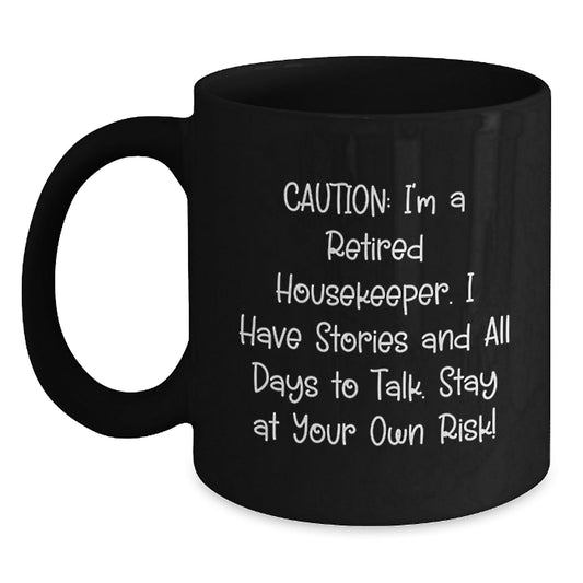 Housekeeper Humor Funny Gift for Housekeeper Graduation, Retro Black Coffee Mug from Friends, 11oz/15oz, Microwave & Dishwasher Safe