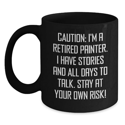 Funny Painter Gifts: 'Caution: I'm A Retired Painter...' Black Coffee Mug for Painter Enthusiasts, Graduation Unique Gifts from Friends, Family, Coworkers, or Men
