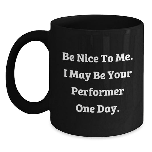 Funny Performer Gifts from Friends to Graduation Success, Black Coffee Mug with Inspirational Quote, 'Be Nice To Me. I May Be Your Performer One Day.'
