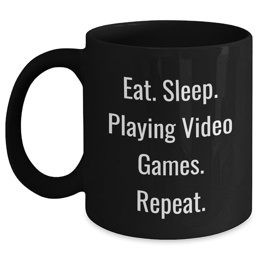 Funny Playing Video Games Gifts for Him - Eat. Sleep. Playing Video Games. Repeat. Black Coffee Mug, Father's Day Unique Gifts from Men to Family