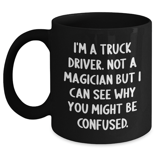 Funny Gift for Truck Drivers, I'm A Truck Driver. Not A Magician But I Can See Why You Might Be Confused. Black Coffee Mug, Gifts from Men for Truck Driver