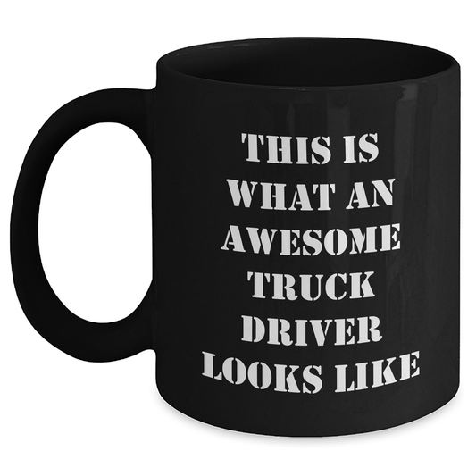 Funny Truck Driver Gifts - This Is What An Awesome Truck Driver Looks Like, Black Coffee Mug for Father's Day, Gifts from Family to Truck Driver