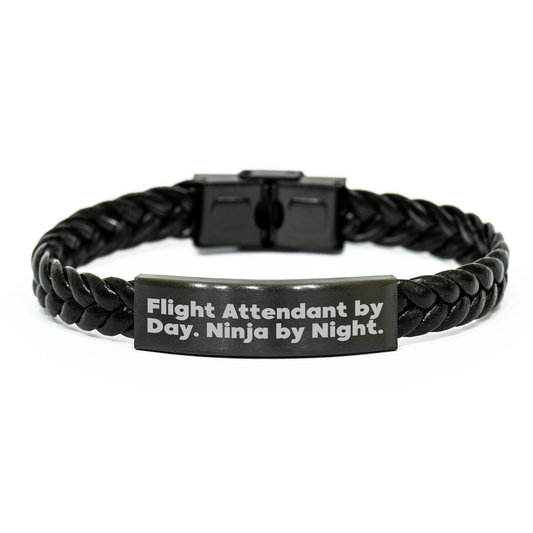 Flight Attendant Gifts from Friends - Inspirational Interlaced Leather Bracelet for Flight Attendant By Day. Ninja By Night. Mothers Day Unique Gifts
