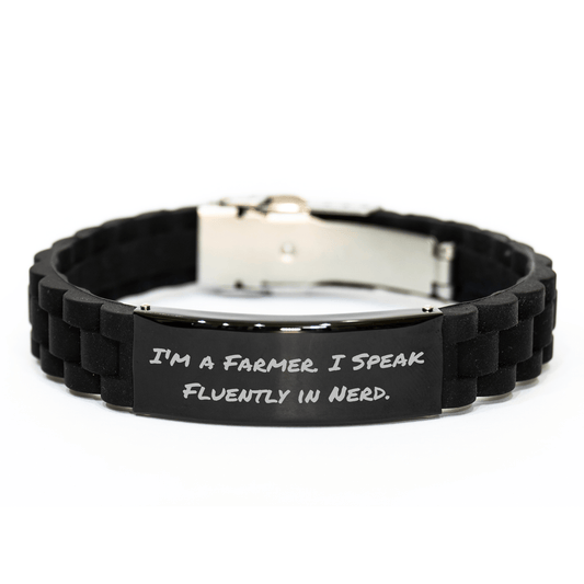 Farmer's Proud Glide lock Clasp Black Stainless Steel Silicone Adjustable Gift for Men 'I'm A Farmer. I Speak Fluently In genius.' Graduation