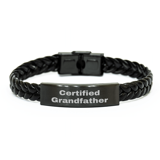 Funny Grandfather Gifts, Certified Grandfather Quote Interlaced Leather Bracelet for Men, 7.87 inches Long, Stainless Steel and PU Leather Combination, Perfect for Father's Day