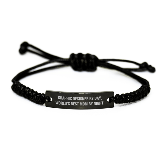 Graphic Designer Gifts: Funny Quote Rope Bracelet for Men, 'Graphic Designer By Day, World's Best Mom By Night.' Father's Day Unique Gifts from Friends
