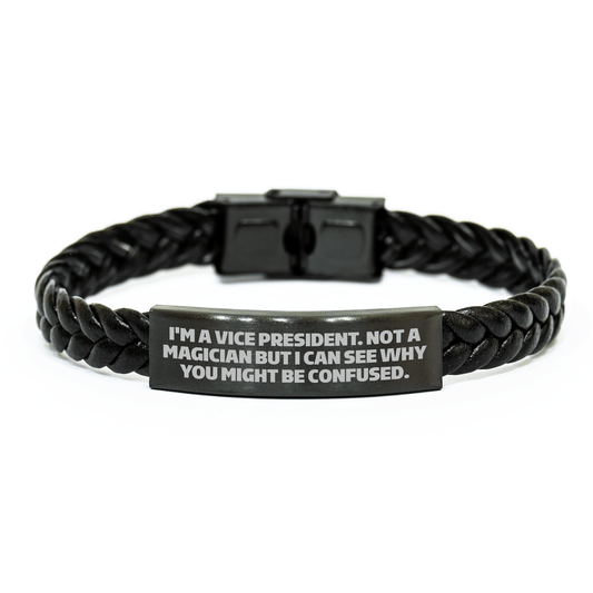 Vice President Gifts Funny Quote Interlaced Leather Bracelet for Men or Women from Friends, Coworkers, Family, Unique Graduation Gifts