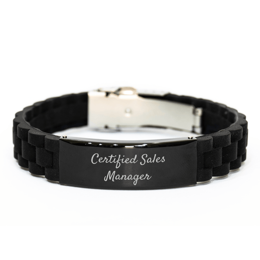 Inspirational Certified Sales Manager Gifts from Men - Glide lock Clasp Black Stainless Steel Silicone Adjustable Father's Day Unique Presents for Sales Manager