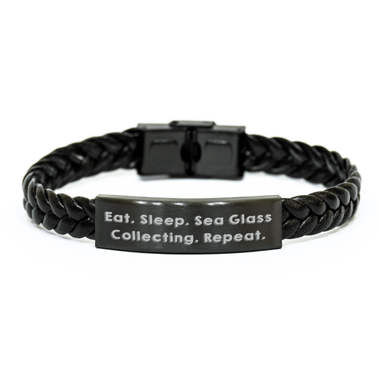 Funny Sea Glass Collecting Gifts for Men - Interlaced Leather Bracelet Eat. Sleep. Sea Glass Collecting. Repeat. from Dad, Father's Day Unique Gifts