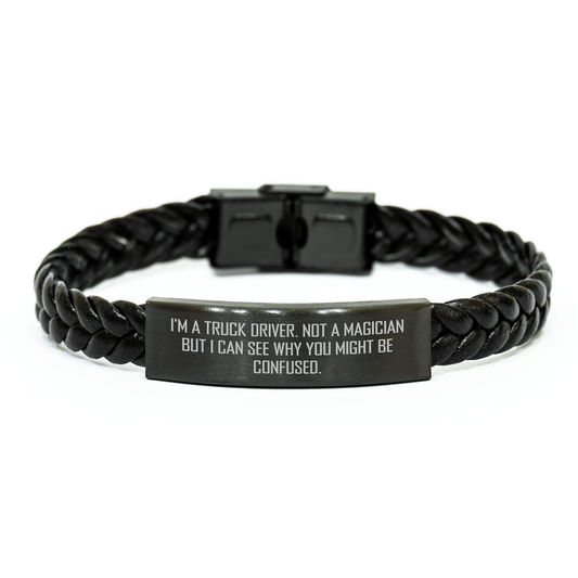 Truck Driver Gifts from Friends, Graduation Unique Interlaced Leather Bracelets, 'I'm A Truck Driver. Not A Magician But I Can See Why You Might Be Confused.' Funny Truck Driver Accessories