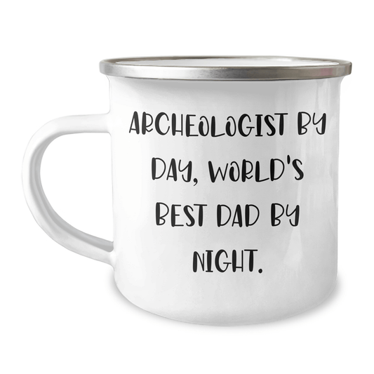 Funny Archeologist Gifts from Dad for Men, Camping Mug for Graduation, 'Archeologist By Day, World's Best Dad By Night.'