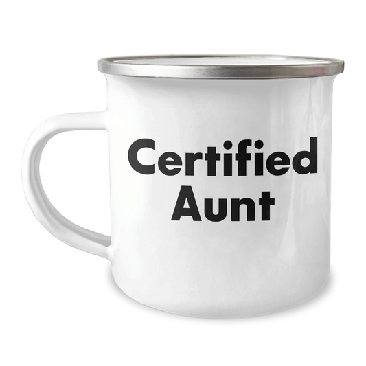 Aunt's Camping Adventure Quote, Funny Gifts from Men to Aunt on Father's Day, 12 oz Stainless Steel Enamel Mug, Gifts for Aunt