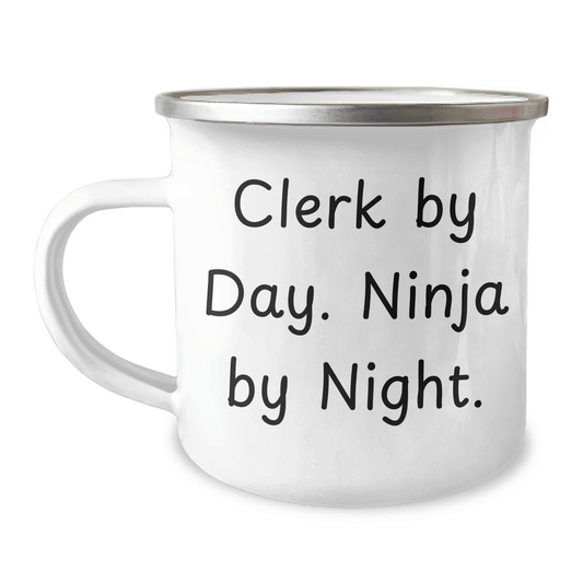 Clerk Gifts from Friends, Funny Clerk By Day. Ninja By Night. Graduation Unique Gifts, Camping Mug for Clerk