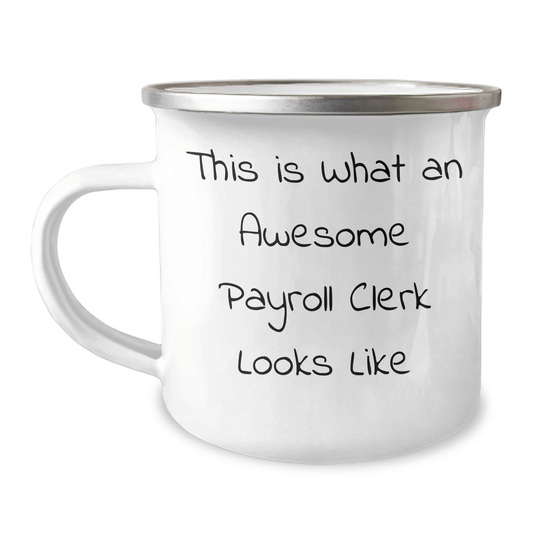 Payroll Clerk Gifts from Friends, Unique Graduation Mugs for Payroll Clerk, Funny Quote, Camping Mug for Payroll Clerk, Awesome Payroll Clerk Looks Like, 12 oz Stainless Steel with Enamel Finish