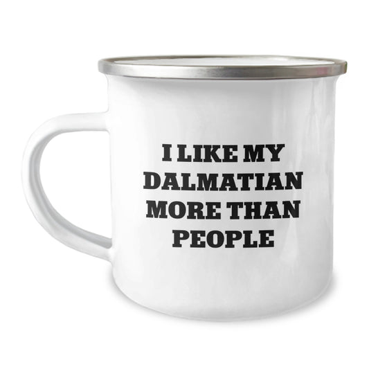 Dalmatian Dog Lover's Camping Mug, Funny Quote Gifts from Friends, Unique Birthday Unique Gifts for Him or Her, I Like My Dalmatian More Than People