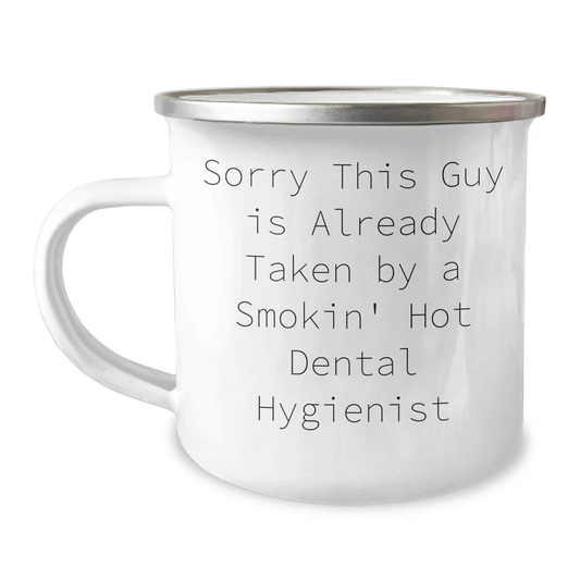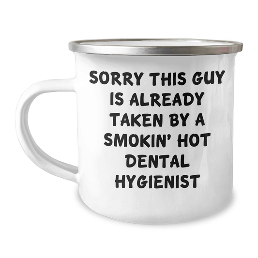 Funny Dental Hygienist Gifts, Sorry This Guy Is Already Taken, 12 oz Stainless Steel Camping Mug for Men, Women, Coworkers, Family - Gifts from Friends, Unique Father's Day Unique Gifts