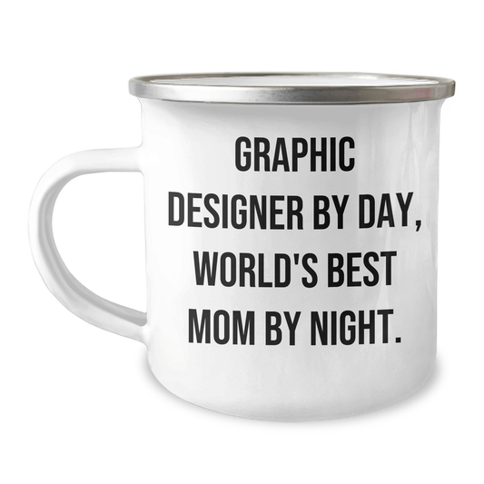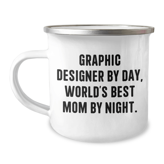 Graphic Designer Gifts, Camping Mug, 'Graphic Designer By Day, World's Best Mom By Night.' Funny Quote, Father's Day Unique Gifts from Mom to Graphic Designer
