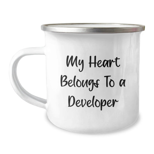 Funny Developer Gifts from Friends - My Heart Belongs To A Developer, Camping Mug for Birthday