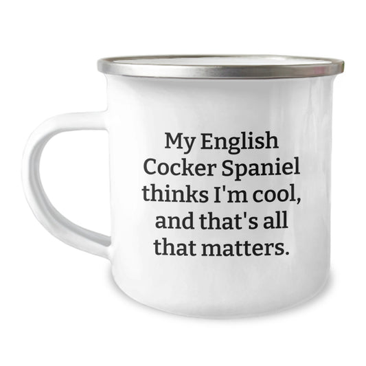 English Cocker Spaniel Dog Camping Mug Funny Gift from Friends for Birthday - My English Cocker Spaniel Thinks I'm Cool