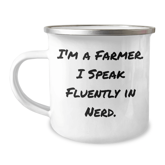Farmer's Funny Camping Mug - Gifts from Friends for Graduation, Unique Farmers Gifts, 'I'm A Farmer. I Speak Fluently In genius.'