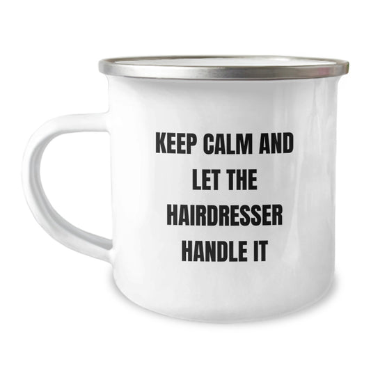 Funny Hairdresser Christmas Unique Gifts from Friends, Unique Camping Mug for Hairdresser, Keep 'Calm and Let the Hairdresser Handle It'