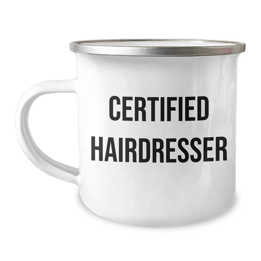 Father's Day Unique Gifts from Men to Hairdresser - Funny Quote Camping Mug, 12 oz Stainless Steel Enamel Finish, Perfect for Hairdresser Gifts, Hairdresser Apparel, Hairdresser Accessories