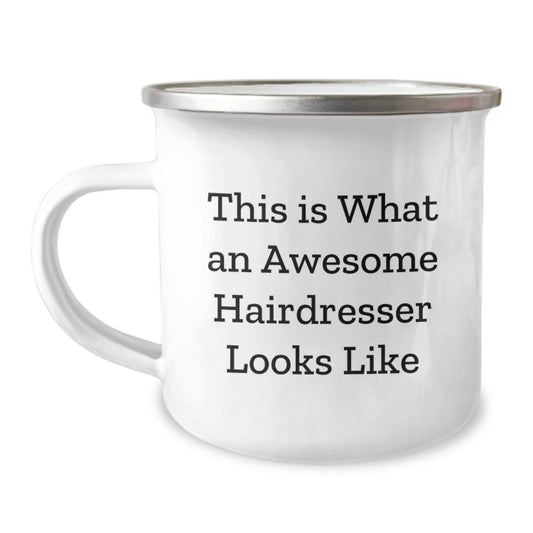 Hairdresser Gifts from Friends, Cute Camping Mug for Awesome Hairdresser, This Is What An Awesome Hairdresser Looks Like, Graduation Unique Gifts