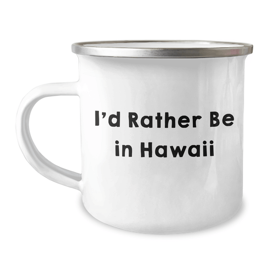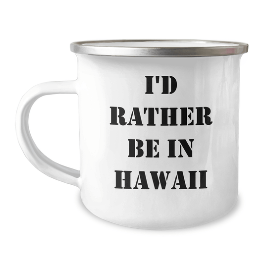 Hawaii Inspired Camping Mug, 'I'd Rather Be In Hawaii', 12 oz Capacity, Gifts from Friends for Graduation