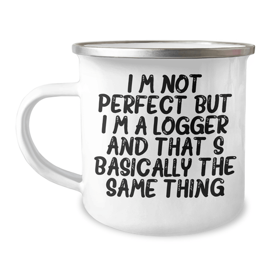 Logger Gifts from Friends and Family - Funny Camping Mug for Mother's Day 'I'm Not Perfect But I'm A Logger And That's Basically The Same Thing' - 12 oz Stainless Steel with Enamel Finish
