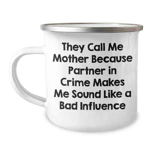 Funny Mother's Camping Mug Gifts from Friends for Father's Day, 'They Call Me Mother Because Partner In Crime Makes Me Sound Like A Bad Influence'