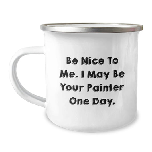 Funny Painter Gifts from Friends for Men, 'Be Nice To Me' Camping Mug with Enamel Finish - Unique Christmas Memorable Presents