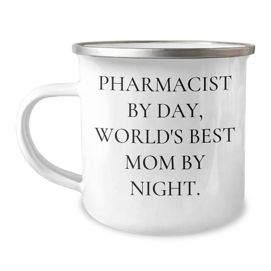 Funny Pharmacist Gifts - 'Pharmacist By Day, World's Best Mom By Night.' Camping Mug for Graduation, Stainless Steel with Enamel Finish, Gifts from Mom to Pharmacist