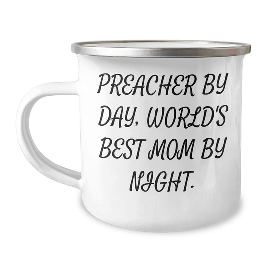 Funny Preacher Gifts, Preacher By Day, World's Best Mom By Night., Unique Camping Mug for Father's Day, Gifts from Men, Gifts for Preacher