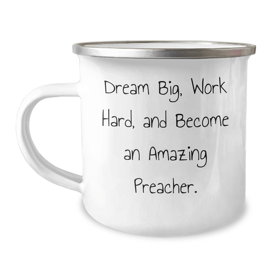 Inspiring Preacher Gifts from Friends for Graduation - Dream Big Work Hard Camping Mug, 12 oz Stainless Steel with Enamel Finish, Funny Quote
