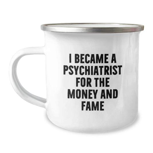 Funny Psychiatrist Gifts for Him - Gifts from Friends and Family - Camping Mug for Psychiatric Professionals - I Became A Psychiatrist For The Money And Fame, Christmas Unique Gifts