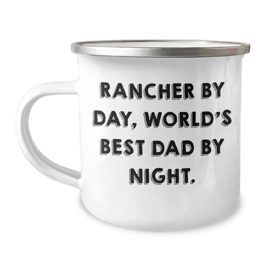 Rancher Gifts from Men - Funny Camping Mug for Rancher By Day, World's Best Dad By Night. - Father's Day Unique Gifts