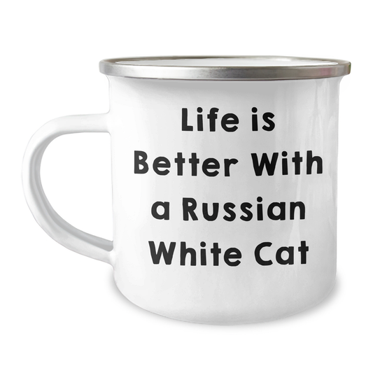Russian White Cat Lover Gifts from Friends Funny Camping Mug for Christmas Unique Presents