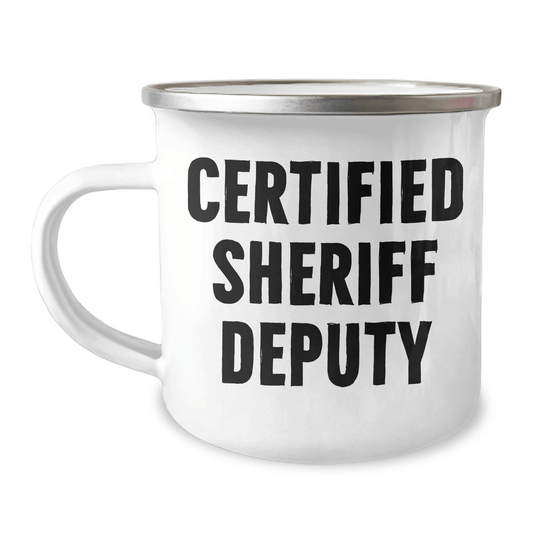 Funny Sheriff Deputy Gifts from Men - Camping Mug for Sheriff Deputy, 'Certified Sheriff Deputy' Quote, 12 oz Stainless Steel with Enamel Finish, Ideal Gift for Father's Day
