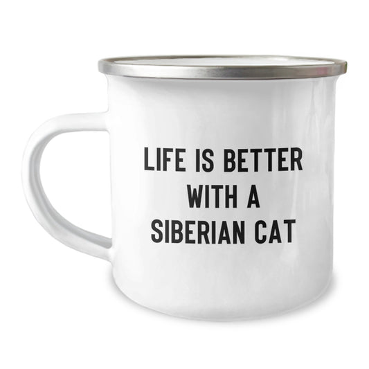 Gifts from Siberian Cat Lovers - Life Is Better With A Siberian Cat, Funny Camping Mug for Graduation, 12 oz Stainless Steel with Enamel Finish, Perfect for Siberian Cat Enthusiasts and Friends