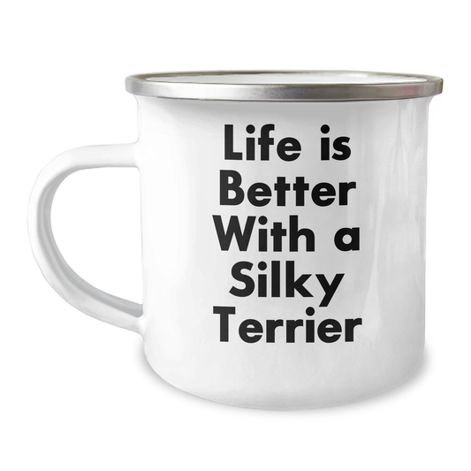 Funny Silky Terrier Dog Lover's Gifts from Men to Dad's on Father's Day, Camping Mug - Life Is Better With A Silky Terrier, Unique Gifts for Silky Terrier Dog Enthusiasts