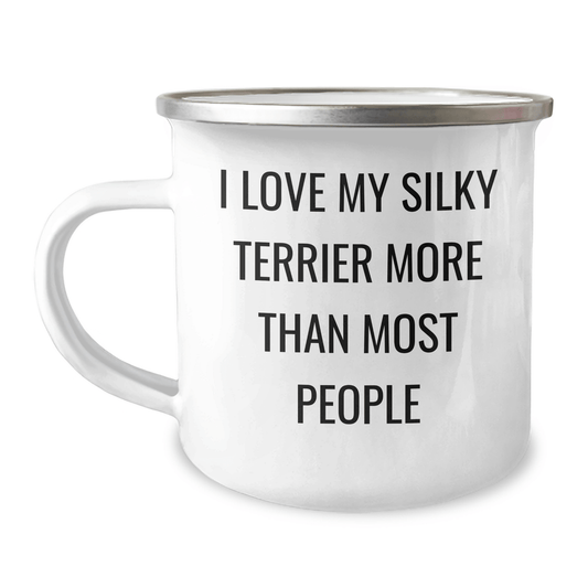 Funny Silky Terrier Dog Gifts I Love My Silky Terrier More Than Most People, Unique Camping Mug for Men from Family, Perfect for Father's Day